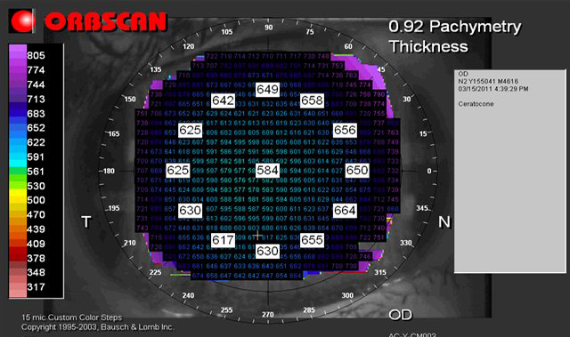 Exame que avalia a espessura corneana. Importante aliado na avaliação de cirurgia refrativa (para deixar de usar óculos ou lentes de contato) e para diagnóstico de ceratocone e outras várias doenças que alteram a espessura corneana, como glaucoma ou edema de córnea.